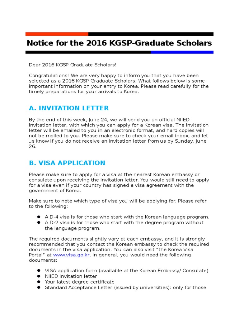 3 Notice For The 2016 Kgsp Graduate Scholars Travel Visa Email