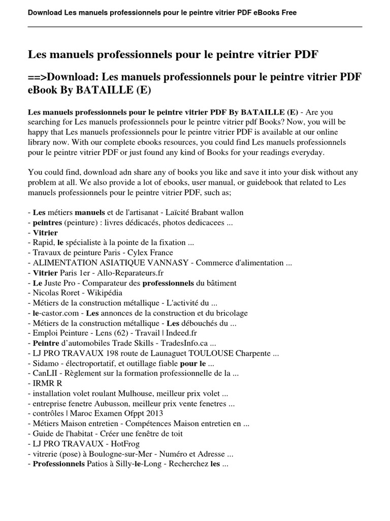 Les Manuels Professionnels Pour Le Peintre Vitrier Pdf Informatique Et Technologies De L Information Science Et Technologie
